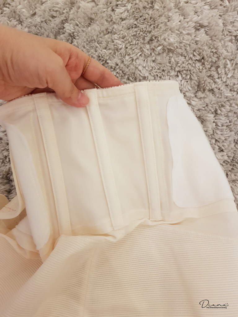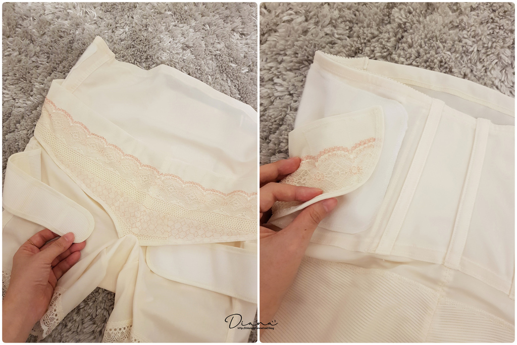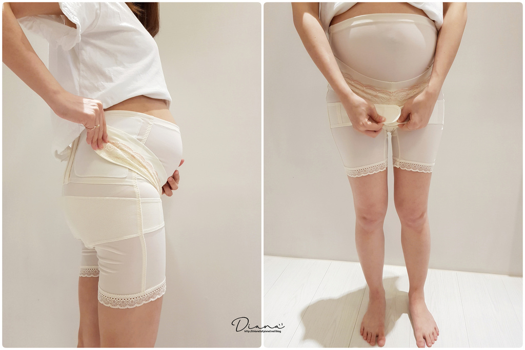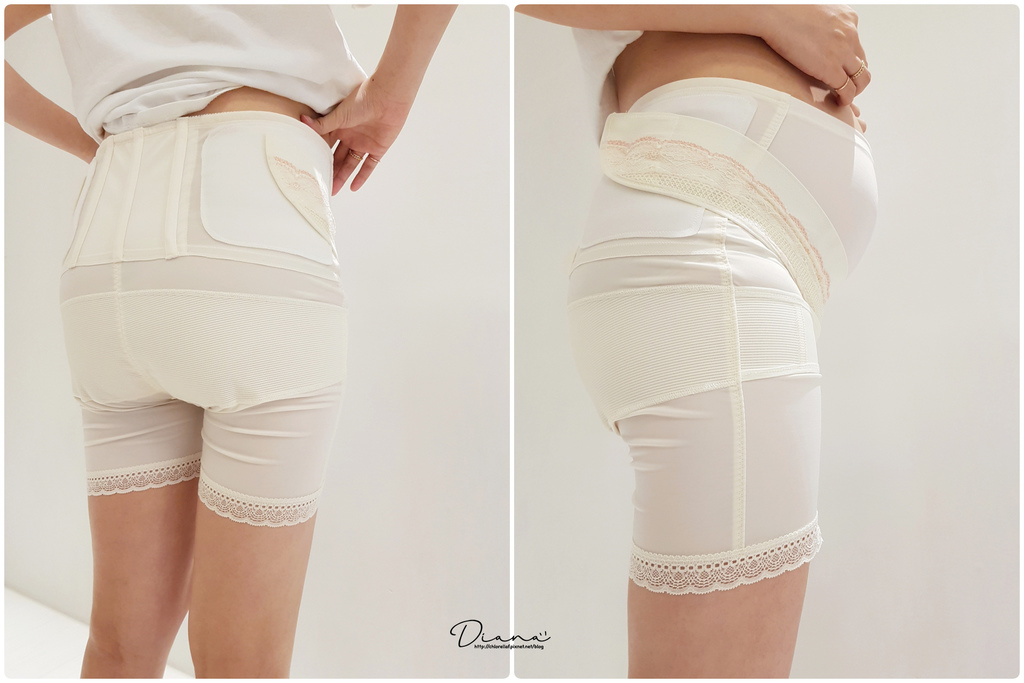 正面有蕾絲的地方是自黏式托腹帶設計,可調整寬鬆